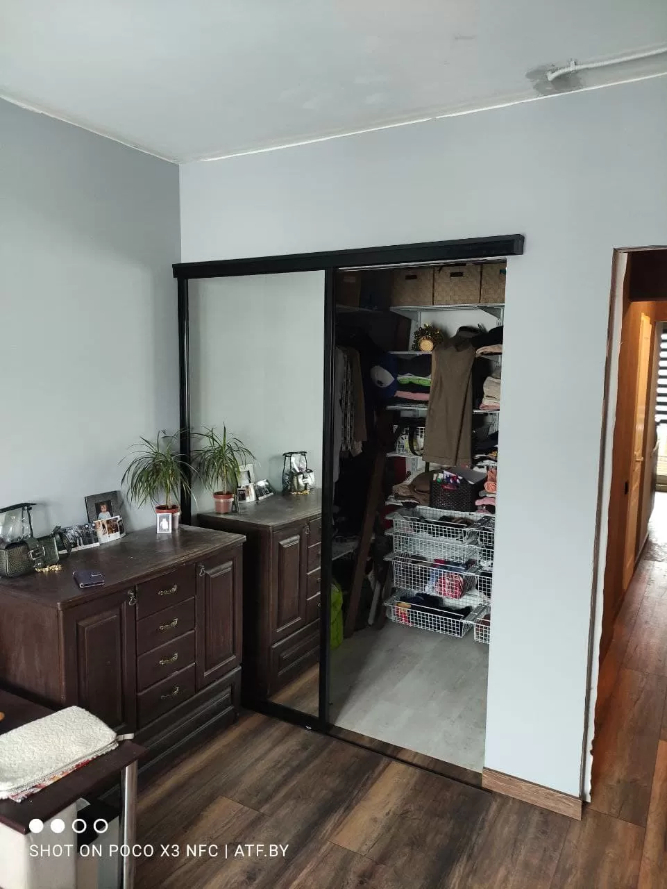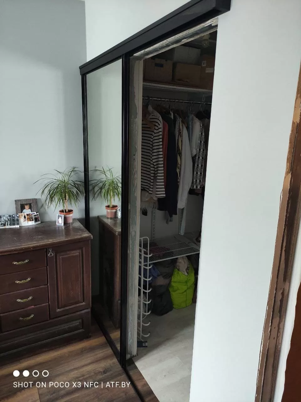 Дверь в гардеробную, черного цвета, сплошное зеркало